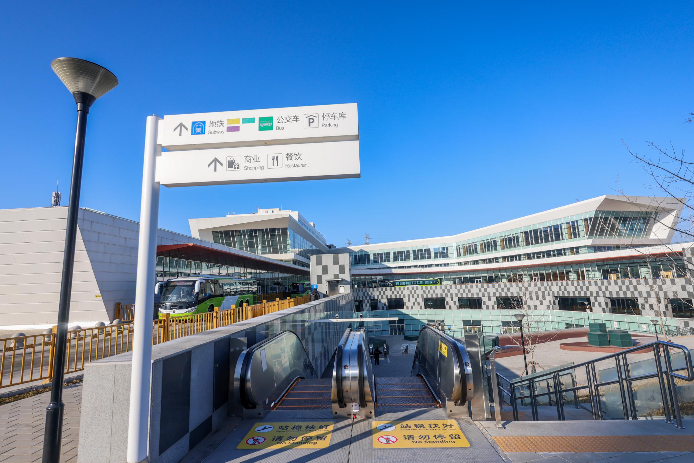 从望京西站E口出站,便来到了当天同步开通的望京西交通枢纽地下层。枢纽装修采用黑白配色,简约时尚又大气。记者注意到,枢纽公交站台共分为两层,乘客搭乘扶梯上一层楼,可以到达夹层,换乘866、571路公交和快速直达专线197路;再上一层即可到达地面层,可换乘907、987、851、854路公交。这两层站台与外界设置了玻璃墙隔离,乘客可以在温暖的室内等候公交。望京西交通枢纽,乘客可以搭乘公交前往密云、怀柔等地。